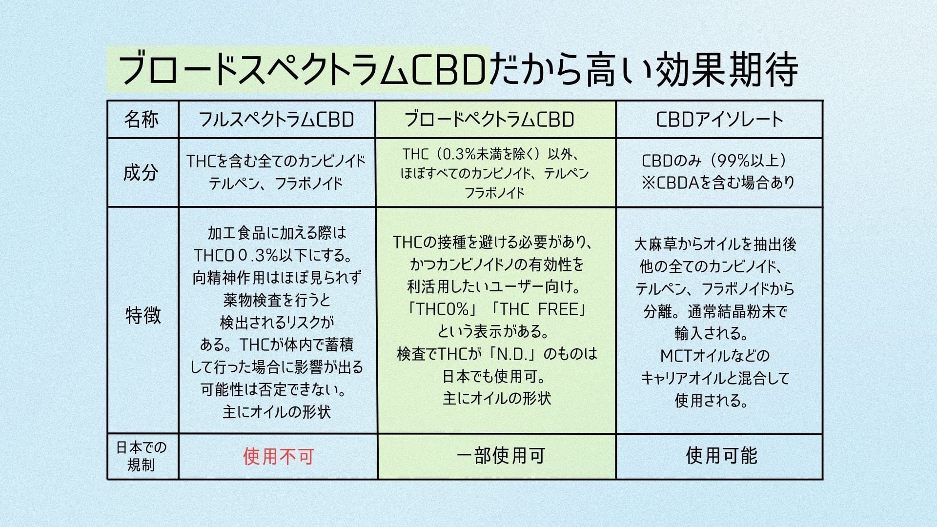 例えばCBD単体(アイソレート)よりも、ブロードスペクトラムのように他の成分が豊富に含まれた製品の方がより高いリラックス効果や睡眠サポートなどの恩恵が期待できます。