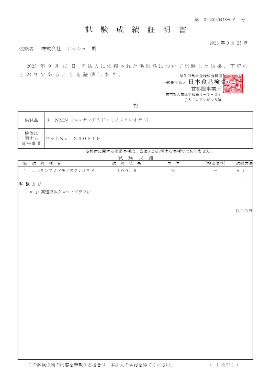 ■NMN純度99.9%